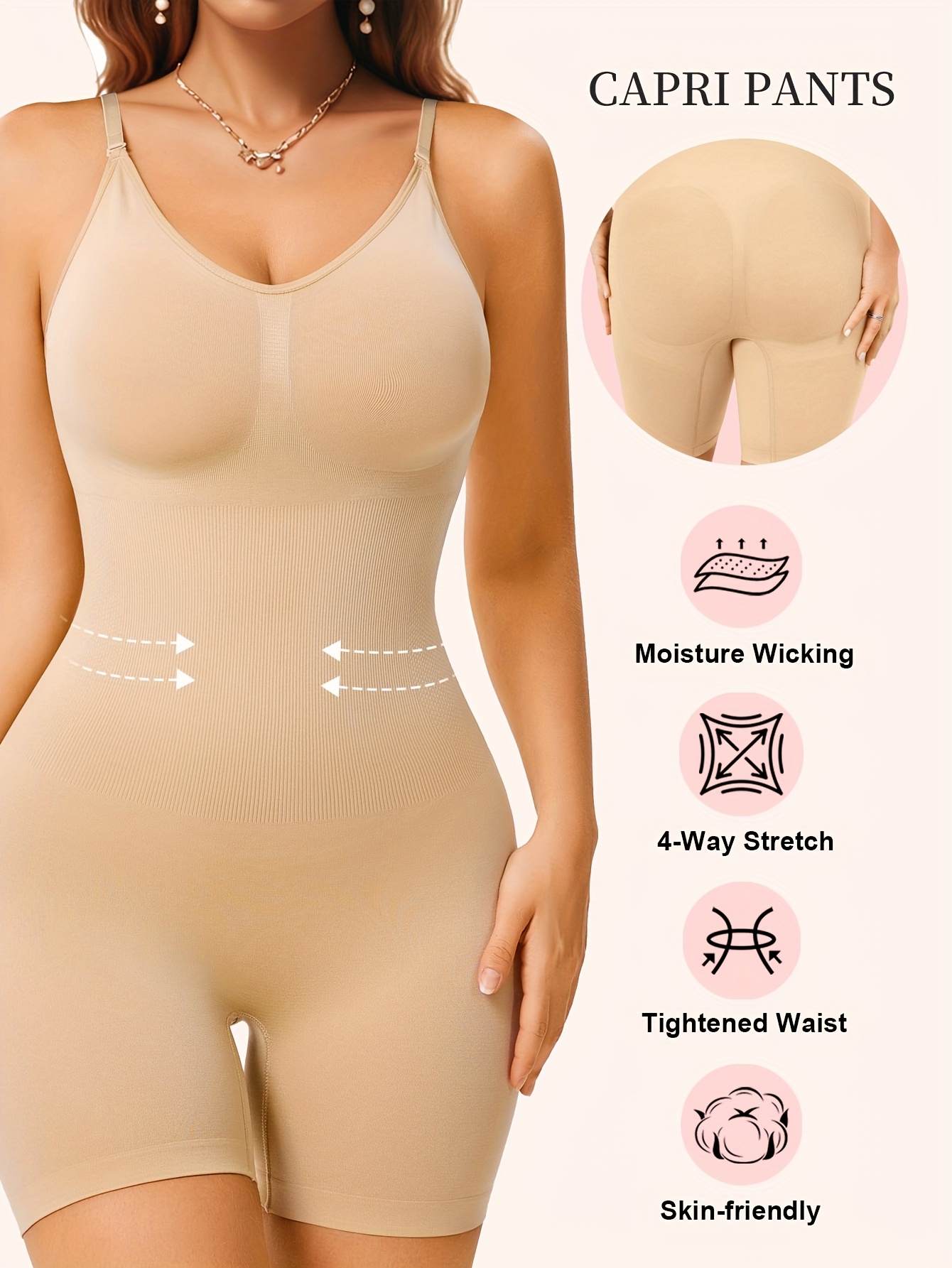 This Tummy Control Butt Lifting Shapewear is a high-waisted, one-piece garment designed for daily wear. It features an integrated capri-style cut with close-fitting fabric to provide full-body shaping.